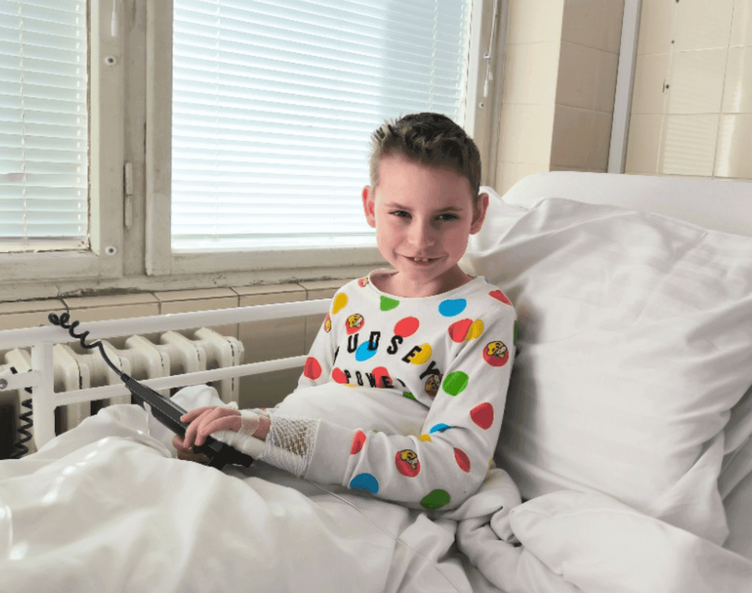 Today, Filípek is a ten-year-old boy diagnosed with perinatal encephalopathy, cerebral palsy, and epilepsy. He cannot walk, sit, or crawl and has a moderate intellectual disability. He relies on a wheelchair and requires 24-hour care.