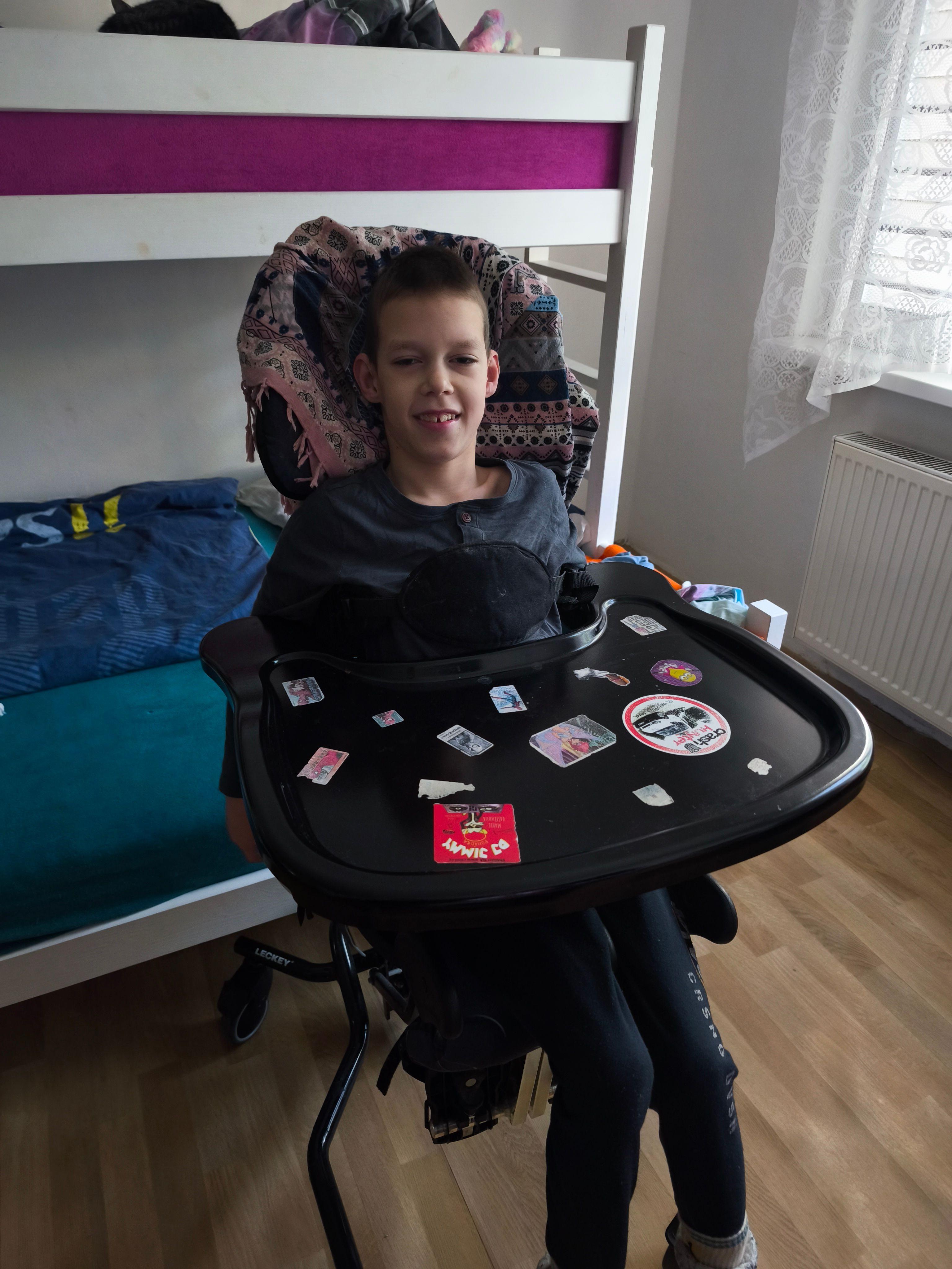 Dravet syndrome also affects Kuba with intellectual disability, autism, ADHD, hyperactivity, and motor difficulties. Even at his age, he relies on a medical stroller. He has a weakened immune system, dysphagia, loss of appetite (he eats almost nothing and requires nutridrinks), and many other health complications. He must follow a strict daily routine – every seizure erases what he has previously learned. Seizures can be triggered by elevated body temperature (even a common cold is dangerous for him), fatigue, changes in environment, hot weather, and especially emotions – he must not become angry or overly excited.